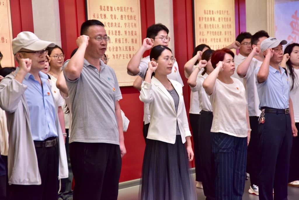 参观结束后,全体党员在党旗前庄严列队,重温入党誓词。“我志愿加入中国共产党…… 随时准备为党和人民牺牲一切,永不叛党!” 铿锵誓言响彻大厅,既是对入党初心的回望,也是对忠诚干净担当政治本色的郑重承诺。