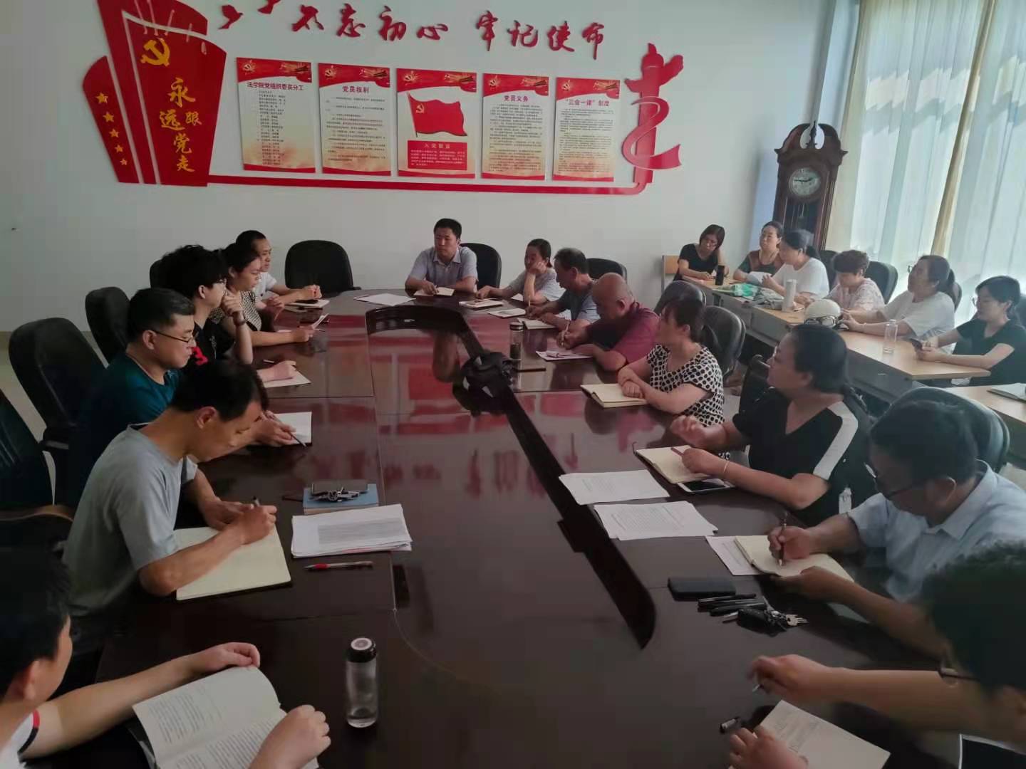 会上还对暑期党史学习教育、四史学习、党的教育方针贯彻落实情况自查、暑期安全、为群众办实事活动开展、师德教育、议事规范提升等工作进行了部署。并对《习近平法治思想概论》课程备课、“学宪法讲宪法”比赛准备、应用型课程改革、暑期教研工作、宪法法律宣讲团备课、山东省模拟法庭大赛准备等业务工作进行了安排,要求师生按照各项工作的预定方案扎实有序推进工作。
