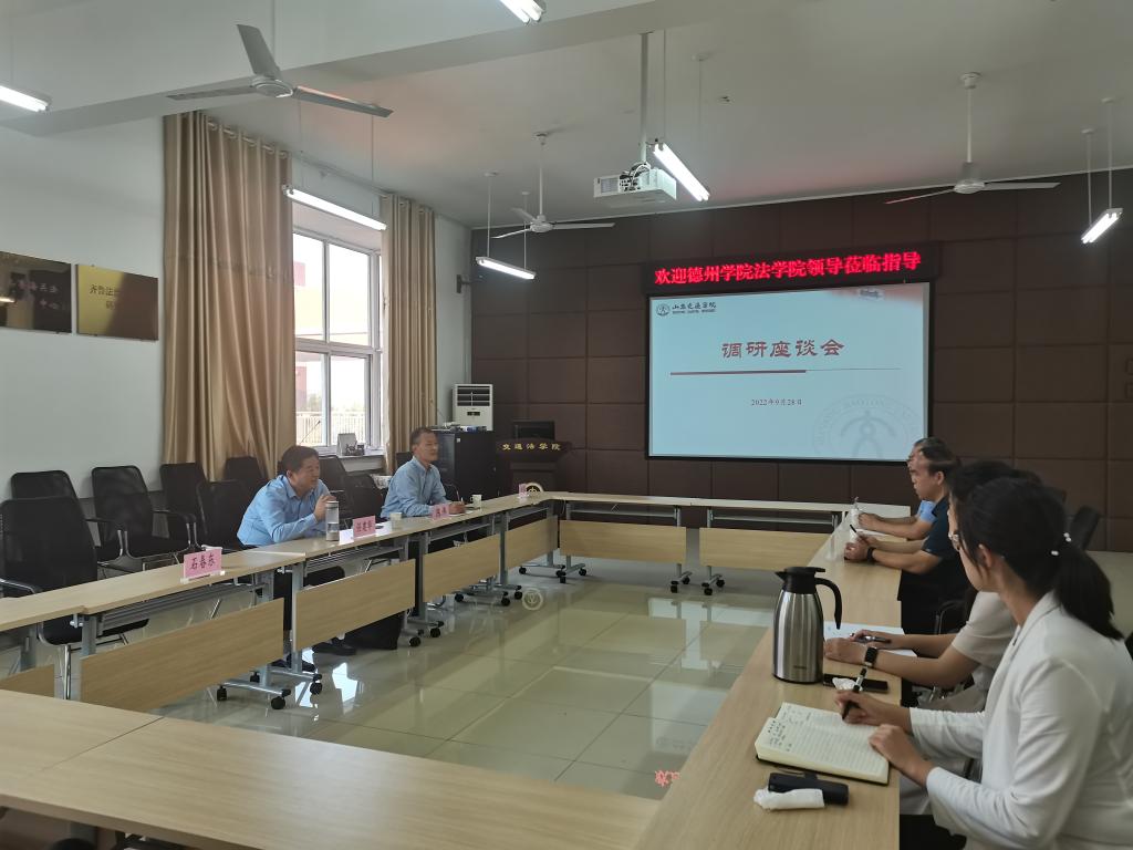 在浙江靖霖(济南)律师事务所,律所主要负责人介绍了靖霖律所的发展历程、执业理念、主要业务领域、律所内部学习制度、对外交流情况和下一步的发展目标。双方一致同意以实习实训基地和就业基地的建立为契机,在人员互聘、联合开课、协同指导学生竞赛、共同编写应用型教材等方面深化合作。
