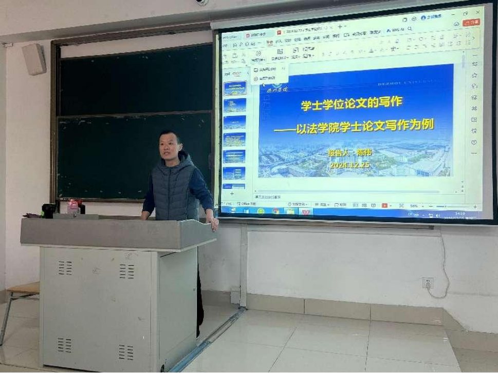 为提升学生的论文写作能力,助力学子们顺利完成学士学位论文,2024年12月25日下午,法学与公共管理学院特邀陈伟教授为2025届全体毕业生在博文楼431教室举办了一场聚焦“学士学位论文的写作”的专题讲座。
