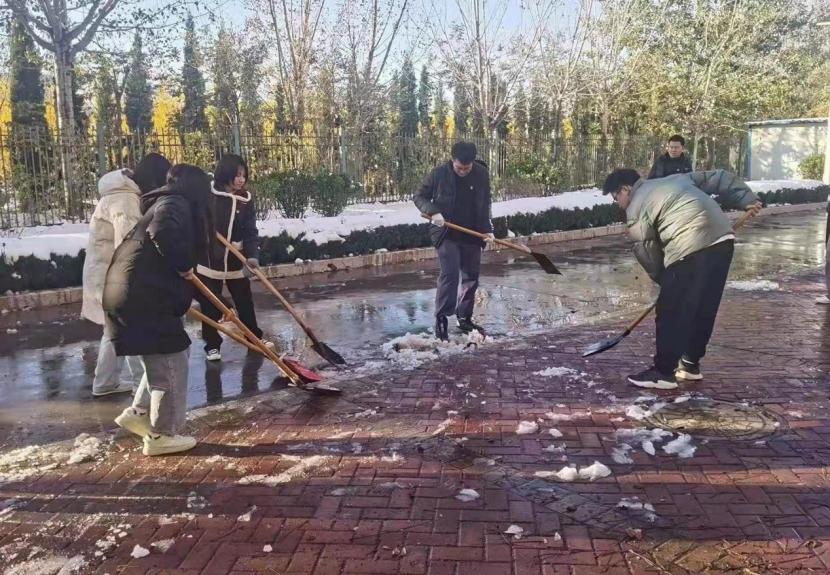 弘扬劳动精神,凝聚奋进力量。志愿扫雪活动,将志愿服务与劳动教育相结合,学生党员和学生干部发挥模范带头作用,实实在在为身边群众办实事。大家纷纷表示,付出劳动,收获平安,这是一场欢乐、温暖、生动的劳动教育课。