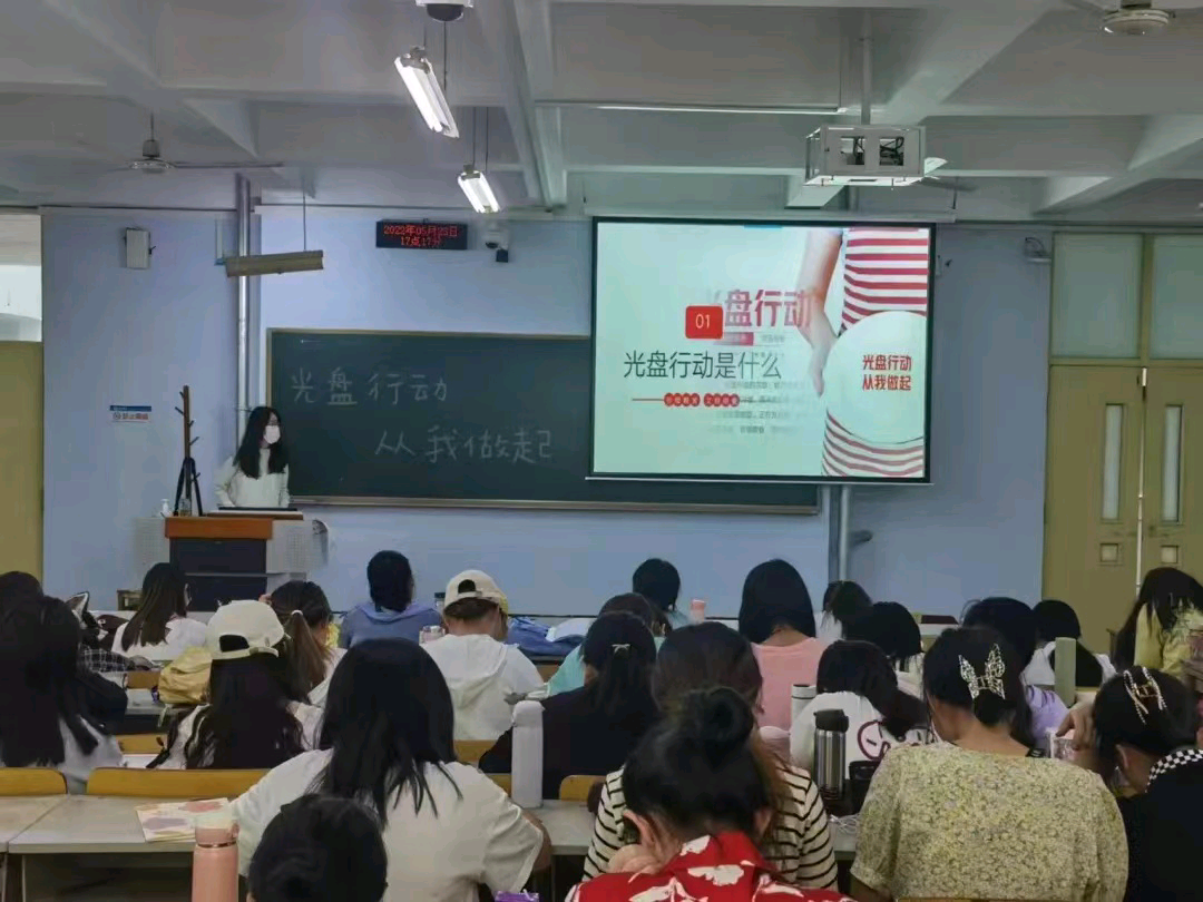 活动伊始,主讲人向同学们介绍了光盘活动的宗旨,提醒我们珍惜粮食节约粮食是古今以来都需要遵守的美德,活动过程中展示了我国浪费粮食的现状,倡导大学生同学们从自身做起,从身边的小事做起,做“光盘行动”的倡导者、推动者和践行者。