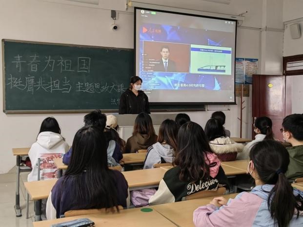 在该思政课程中,党的二十大代表、知名高校思政教师、优秀青年大学生等主讲人讲述了自己的经历。观看后,同学们都有较深的感悟并对此进行交流,作为退役军人大学生的殷国鑫同学表示“我们应该树立远大理想,让自己的青春无悔,脚踏实地去奋斗,弘扬青春时代精神,谱青春之韶华!”