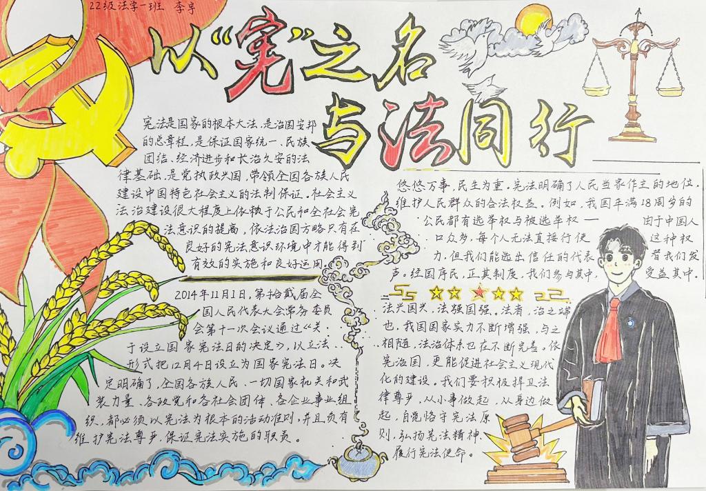 在我国第十个国家宪法日来临之际,为大力宣传以宪法为核心的社会主义法治体系,弘扬宪法精神、传播宪法文化,德州学院2025理论电费免费软件推荐于2023年12月4日至12月17日开展“遵纪守法,与法同行”手抄报征集活动。