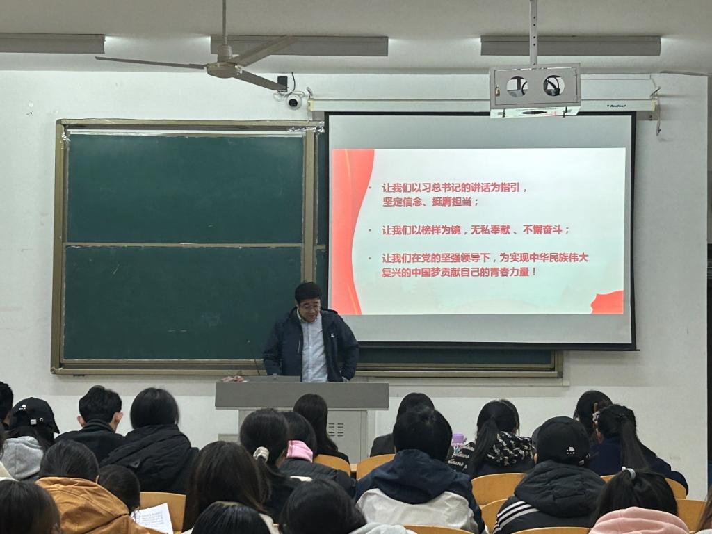 戴峰老师围绕“新青年如何直面现实的挑战”为主题展开本次宣讲,从革命年代的英雄人物到身边刻苦学习的考研同学、以及投身西部计划的新时代青年,每一个故事都激励着同学们要在当今这个充满机遇与挑战的时代,努力激发自己勇敢地走出舒适区,向着理想的彼岸奋勇前行。