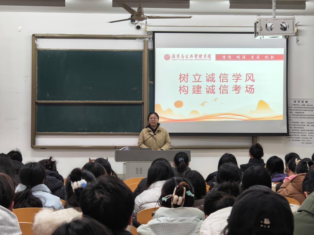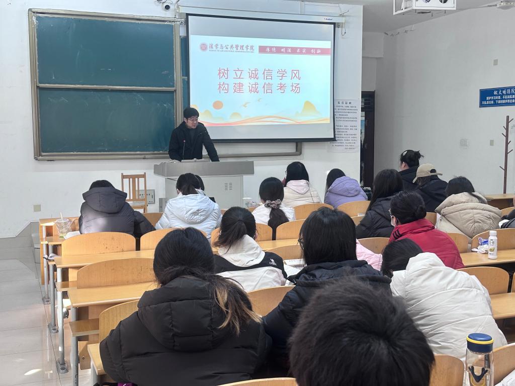 法学与公共管理学院一直高度重视学生的诚信教育,此次主题班会的召开,不仅是一次重要的诚信教育活动,更是学院推进学风建设、提升教学质量的重要举措。通过此次班会,学生们不仅增强了诚信意识,还进一步明确了考试纪律,为即将到来的期末考试打下了坚实的基础。