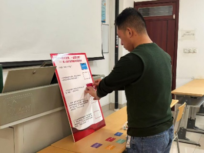 活动现场,参与者在限时4分钟内独立分析5个涵盖法理学、宪法学、民法学等领域的法律案例,从8个选项中为每个案例匹配1个正确答案,并将答案彩纸用钉子固定在对应案例旁。工作人员现场核对答案并协助梳理案例与法条的对应逻辑,帮助同学们精准匹配法律案例与对应法条,强化基础法律条文的理解与记忆。现场氛围热烈高涨,同学们积极参与、互动频繁,尽显参与热情。