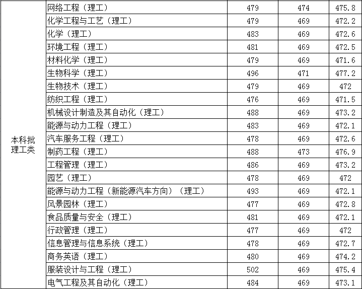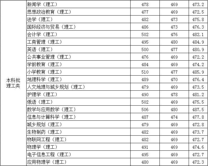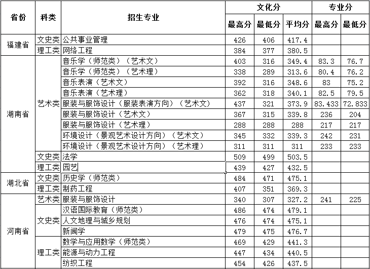 2017年校企合作本科文史、理工类各专业录取分数统计表