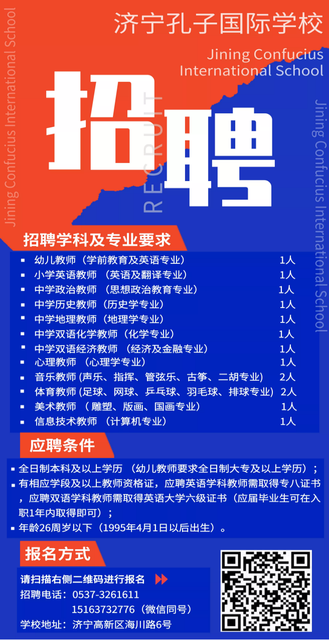 济宁孔子国际学校招聘公告