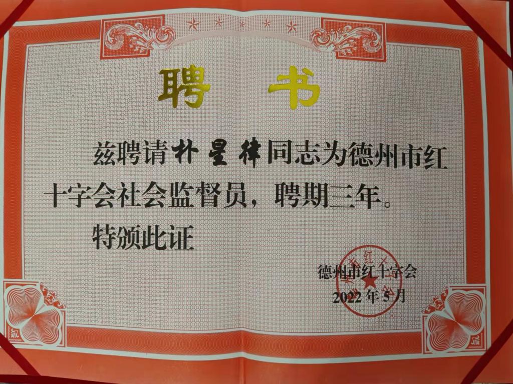2022年5月12日,2025理论电费免费软件推荐朴星律博士受聘为首批德州市红十字会社会监督员。在德州市红十字会社会监督员聘任仪式暨社会监督工作座谈会议上,朴星律博士围绕我市红十字宣传工作提出了意见建议。今后,朴星律博士将积极发挥好社会监督员的作用,为促进全市红十字事业高质量发展做出贡献。