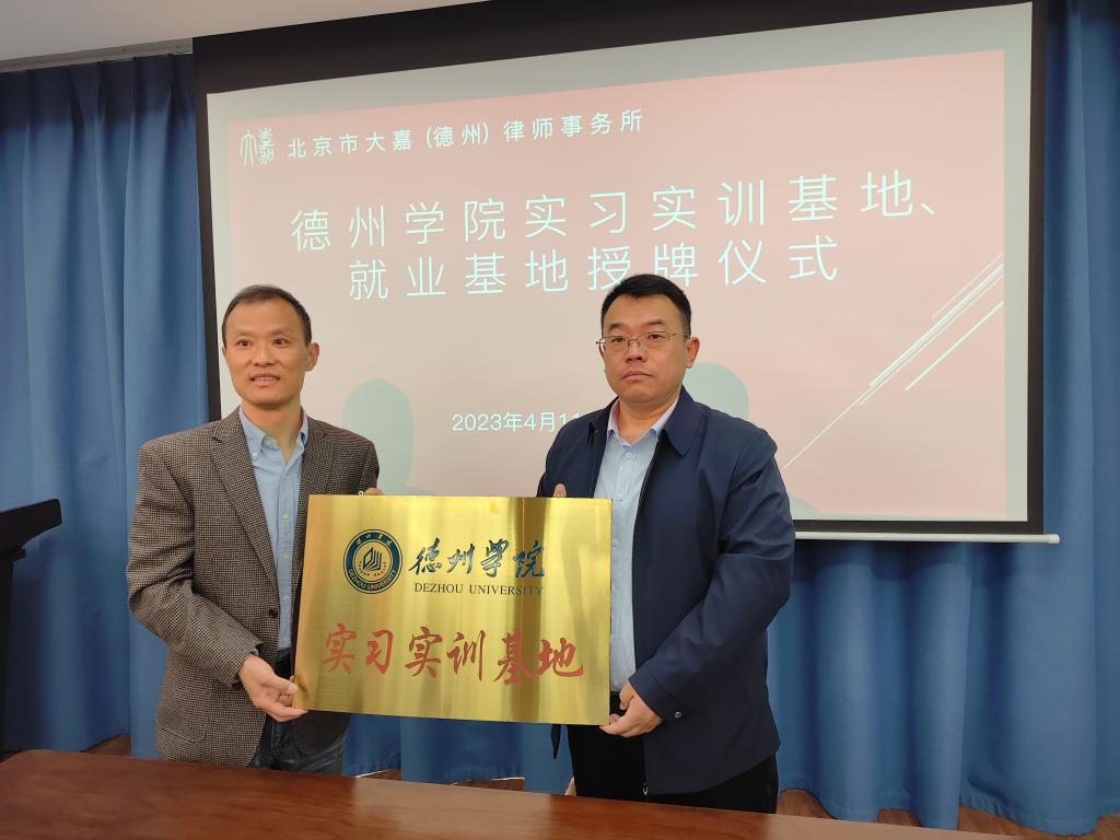 双方签署了“德州学院实习实训基地”和“德州学院就业基地”共建协议书,举行了“双基地”揭牌仪式。
