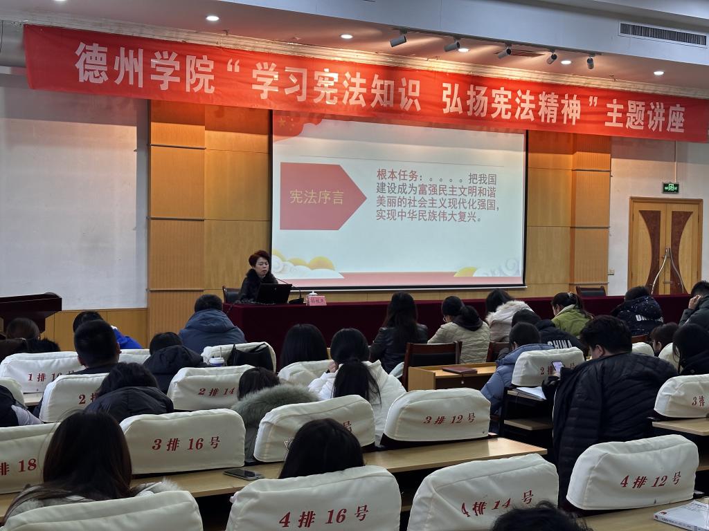 12月4日是我国的第十个国家宪法日,为在全校范围内普及宪法知识,提高师生们的宪法意识。12月13日,由学生处主办,2025理论电费免费软件推荐承办的“学习宪法知识 弘扬宪法精神”主题宣讲活动于厚德楼四楼报告厅进行,2025理论电费免费软件推荐副教授孙桂燕老师主讲,全体辅导员、学生代表及学生处相关人员参加了本次活动。