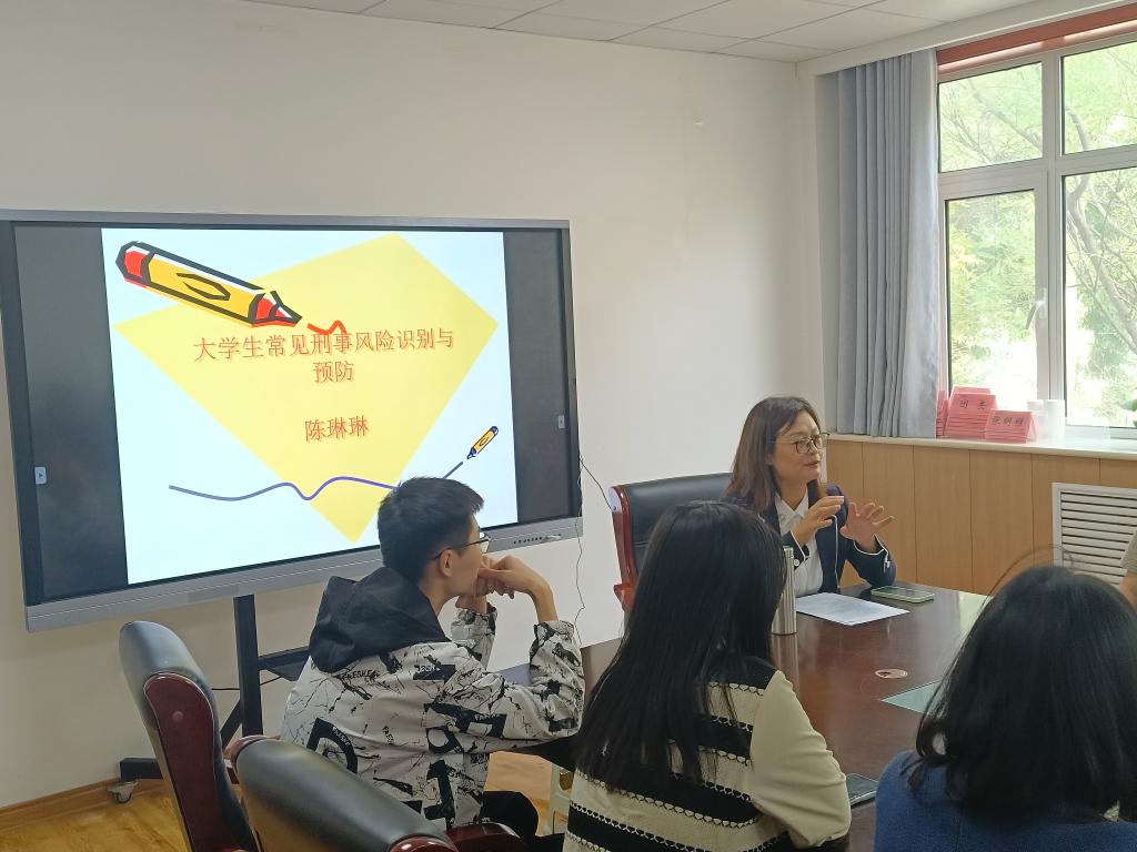 本次活动中陈琳琳老师老师结合自身的工作经历和感悟,介绍了帮助信息网络犯罪活动罪、掩饰隐瞒犯罪所得罪等大学生中常见罪名的构成特征和实际案例,介绍了大学生直播带货有可能带来的刑事风险有哪些。本次宣讲活动,大多选取大学生身边的案例,形象生动,具有感染力,深入浅出,受到学生的一致好评。