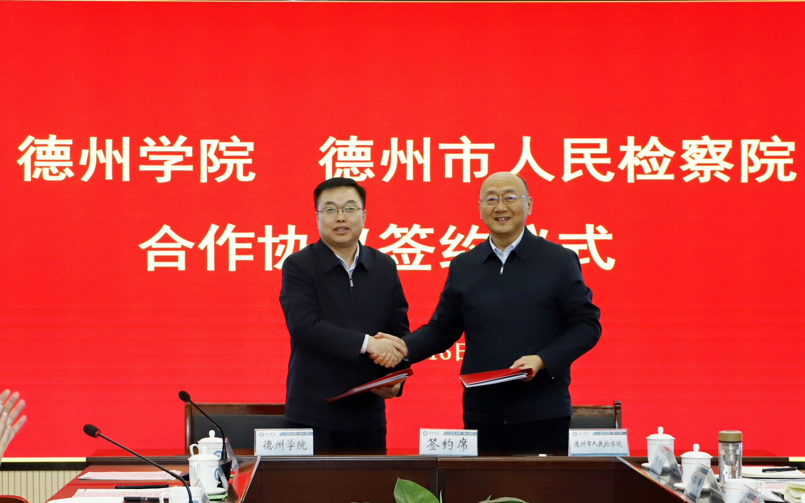 签约仪式上,德州市人民检察院党组书记、检察长许勍,德州学院党委副书记、校长赵长林共同签署德州学院与德州市人民检察院校检共建合作协议。