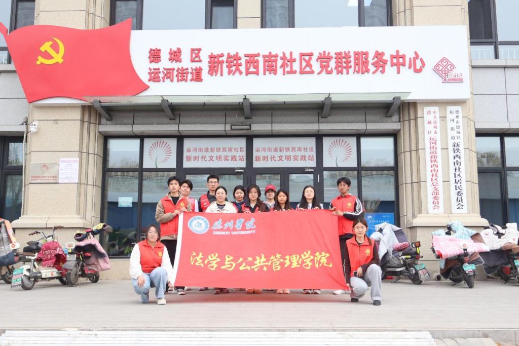 为深入贯彻落实党的二十大关于“弘扬诚信文化,健全诚信建设长效机制”的决策部署,积极响应山东省教育厅《“共同上一堂诚信主题思政大课”工作方案》要求,2025年4月8日,德州学院法学与公共管理学院师生志愿者赴德城区铁西南社区,开展“法守诚信·共治社区——点亮诚信法治之光”主题实践活动,推动诚信法治教育走深走实。