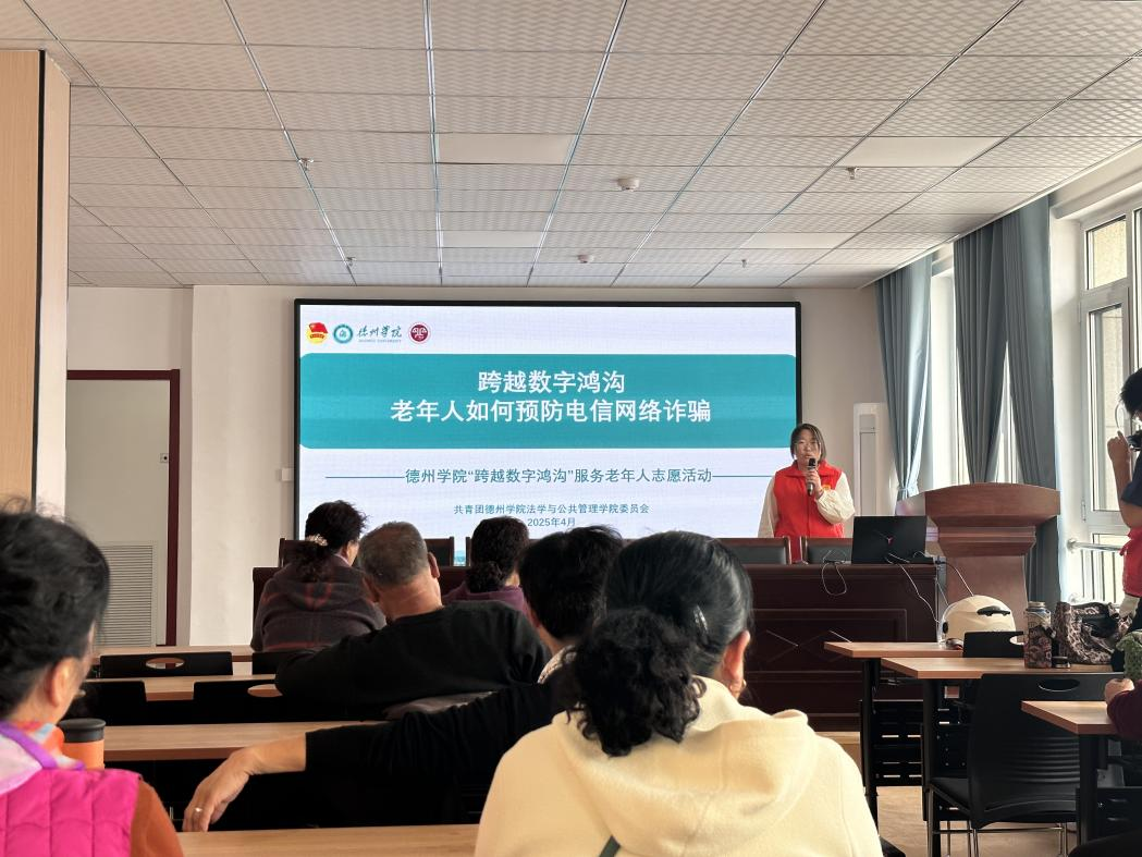 为弘扬志愿精神,提升老年人对电信网络诈骗的防范意识,帮助老年人跨越数字鸿沟,2025年4月8日,德州学院法学与公共管理学院师生赴运河街道铁西南社区,开展“万名学子链接十万老人,助力银龄跨越数字鸿沟”科普专项活动。