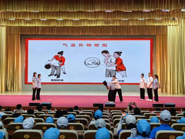 学院获奖师生代表参加了颁奖仪式,并在大会上进行了应急救援情景剧展演。情景剧由法学与公共管理学院红十字志愿队自导自演,同学们通过实操演练心肺复苏和气道异物梗阻急救法向全体参会人员普及了应急技能,此次应急救护知识和技能的展示让法学与公共管理学子在遇到突发事件时能够及时有效的开展现场救护,更好的保障人民群众的生命安全,推动了法学与公共管理学院志愿服务的发展,更是行政管理(应急管理方向)教研与实践教学的提升。