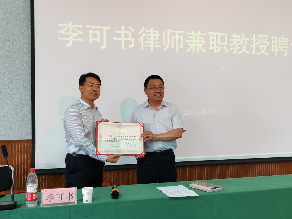 报告中,李主任从人工智能的含义、优缺点入手,基于真实的法学案例,深刻的分析了Deepseek等人工智能中存在的法律议题与Deepseek等人工智能的法律规制路径。最后,李主任与在场的同学们进行了积极的互动,充分解答了同学们在使用人工智能过程中的疑惑。 会前我院负责人向李可书主任颁发了德州学院兼职教授的聘书。报告会后,李可书主任与法学与公共管理学院相关负责人在博文楼439会议室围绕“人才引进”“实习实践”“专业建设”等事宜进行深入座谈交流。双方一致表示,将以此为契机,不断拓宽合作领域,加强校企融合,助推学院高质量发展。
