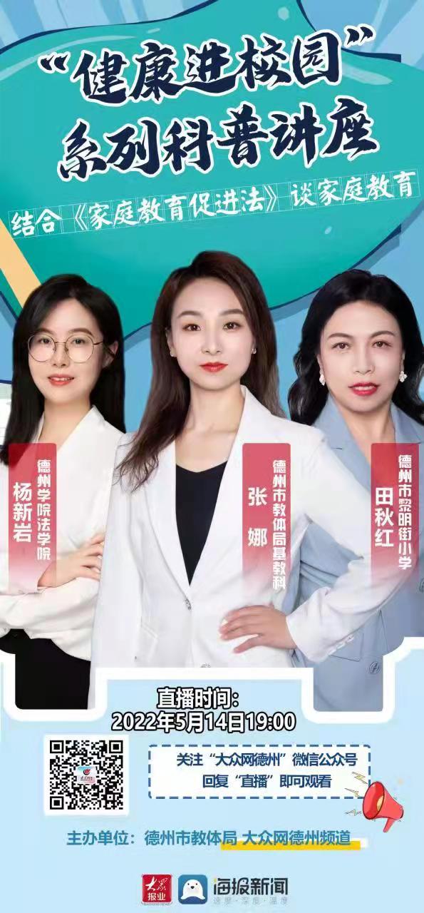 本次公益直播讲座是德州市教育和体育局与大众网德州频道共同推出的“健康进校园”系列科普讲座之一。