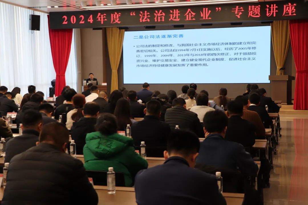为深入学习贯彻习近平法治思想,推进法治国企建设,提升企业合规管理工作水平,12月4日,市国资委、市法学会联合开展“法治进企业”活动。我院教师杨振生应邀为德达集团干部职工作了新公司法专题辅导报告