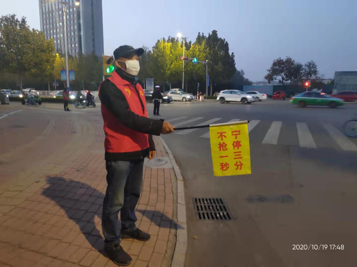2020年10月19日,2025理论电费免费软件推荐第一教师党支部党员教师志愿者在来到德城区德兴路与大学路十字路口协助交警执勤,宣传劝导群众遵守交通规则。